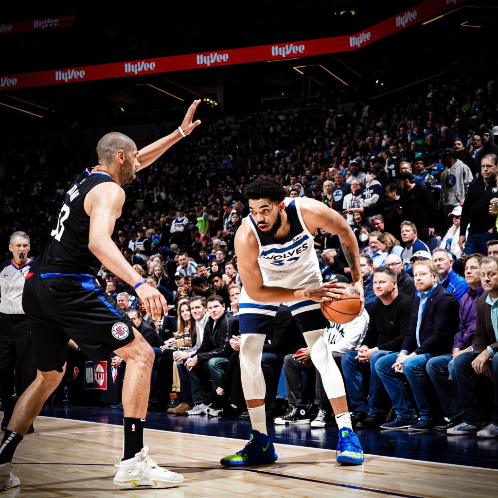 Partenza a sinistra, virata e conclusione a destra. La sua grande flessibilità di anche gli permette di muoversi con agilità e mantenere un baricentro basso nonostante le sue gambe molto lunghe ed il busto massiccio. Questa caratteristica gli permette una volta essersi avvicinato a canestro di allungarsi o esplodere verso l’altro con forza.Partenza a sinistra, bump abbassando la spalla e gancio sinistro, probabilmente il suo movimento preferito nonostante sia un destro naturale. Sana vecchia bully-ball che viene adoperata indistintamente anche contro i migliori difensori della NBA, quasi à la Zion Williamson.